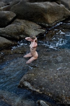 Blonde believes that only naked swim can satisfy her and this is why she gets rid of her clothes when posing in the rocks, as well as diving into warm water