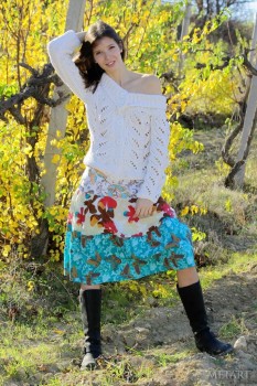 During an outdoor shoot, this sexy model slowly stripped off her clothes until she found herself naked on the rocks wearing nothing but her very hot boots.
