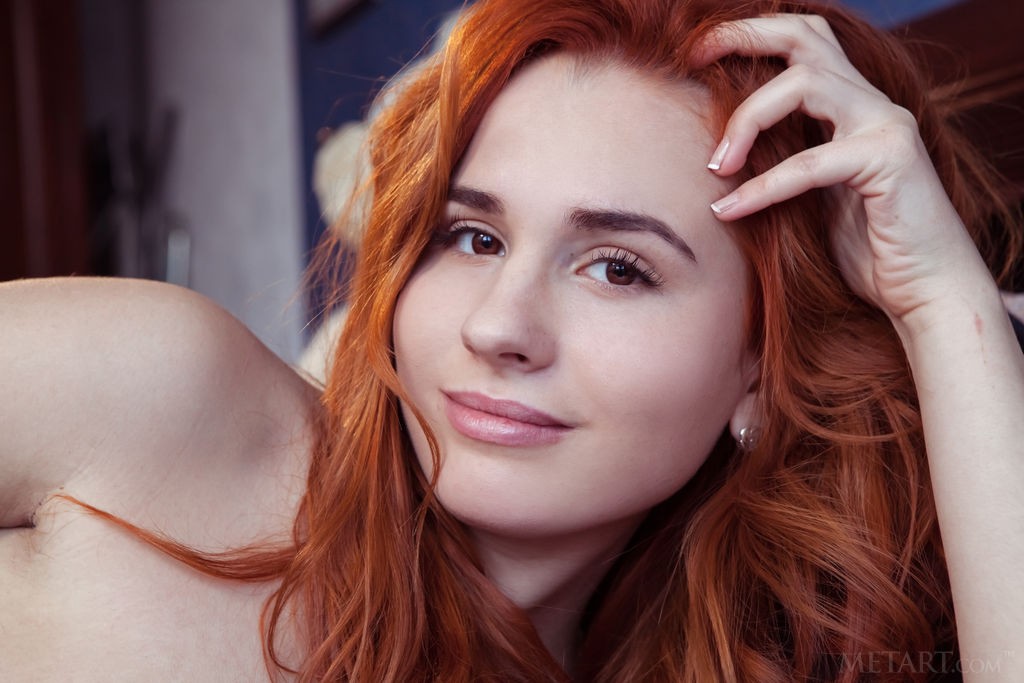 Ginger chick explores every inch of her totally naked body, especially her yummy boobs with beautiful nipples, firm butt and her always dripping wet pussy