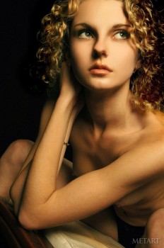 Passionate madam having white curly hair is enjoying solo in the black studio. She is touching her perfect body with great pleasure and excitement.
